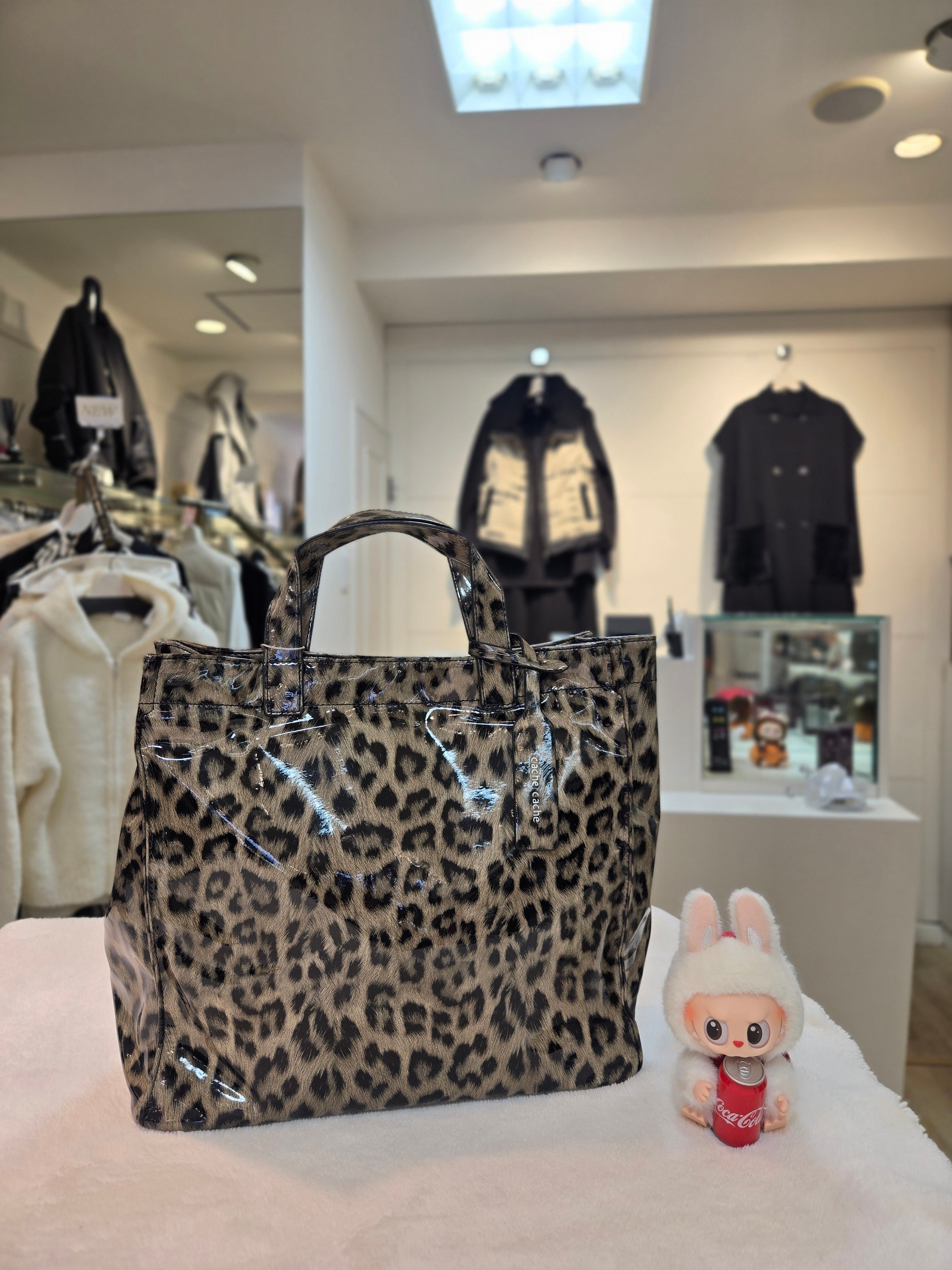 ヒョウ柄エナメルトートバックはつやっとしたエナメルにヒョウ柄がほどよくアクセント持つだけでコーデが一気に華やぐ大人のトートです。